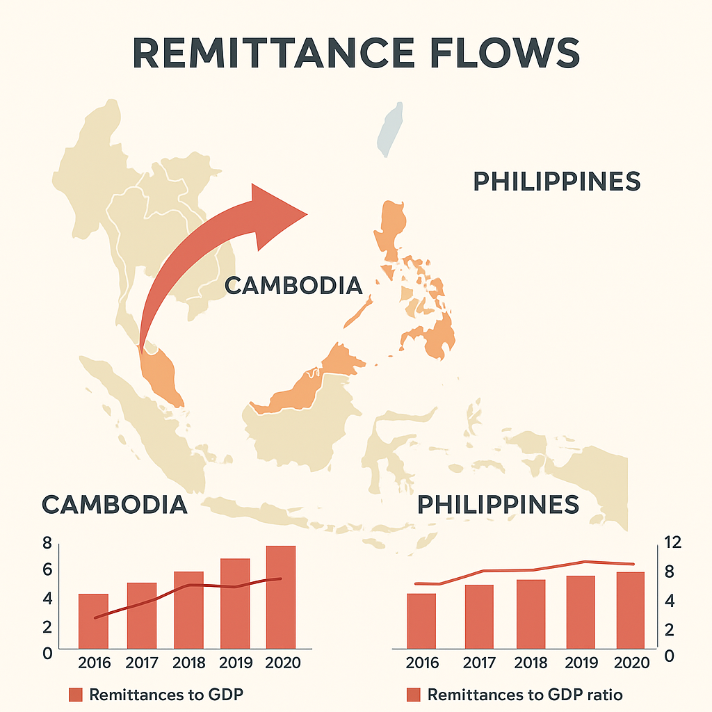 According to recent reports by the Khmer Times, Cambodia and the Philippines lead the Association of Southeast Asian Nations (ASEAN) in the ratio of remittances to GDP. This metric measures how significant money sent home by overseas workers is in the overall economy of these countries. Remittances serve as a critical source of income and support economic stability for many families and communities. The data underscores the economic impact of migrant labor and cross-border employment opportunities in ASEAN countries, especially for nations like the Philippines and Cambodia where overseas work is a common livelihood strategy. Official sources have yet to provide detailed breakdowns, but this trend highlights continued reliance on overseas earnings to supplement domestic income. This is particularly relevant for Filipino overseas workers, a significant population contributing globally through remittances.