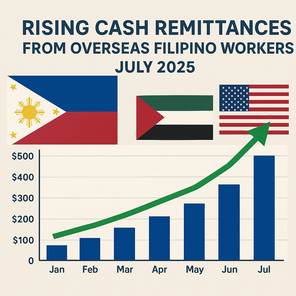 Cash remittances sent by overseas Filipino workers surged to their highest point in seven months in July 2025, signaling continued financial support to the Philippine economy.