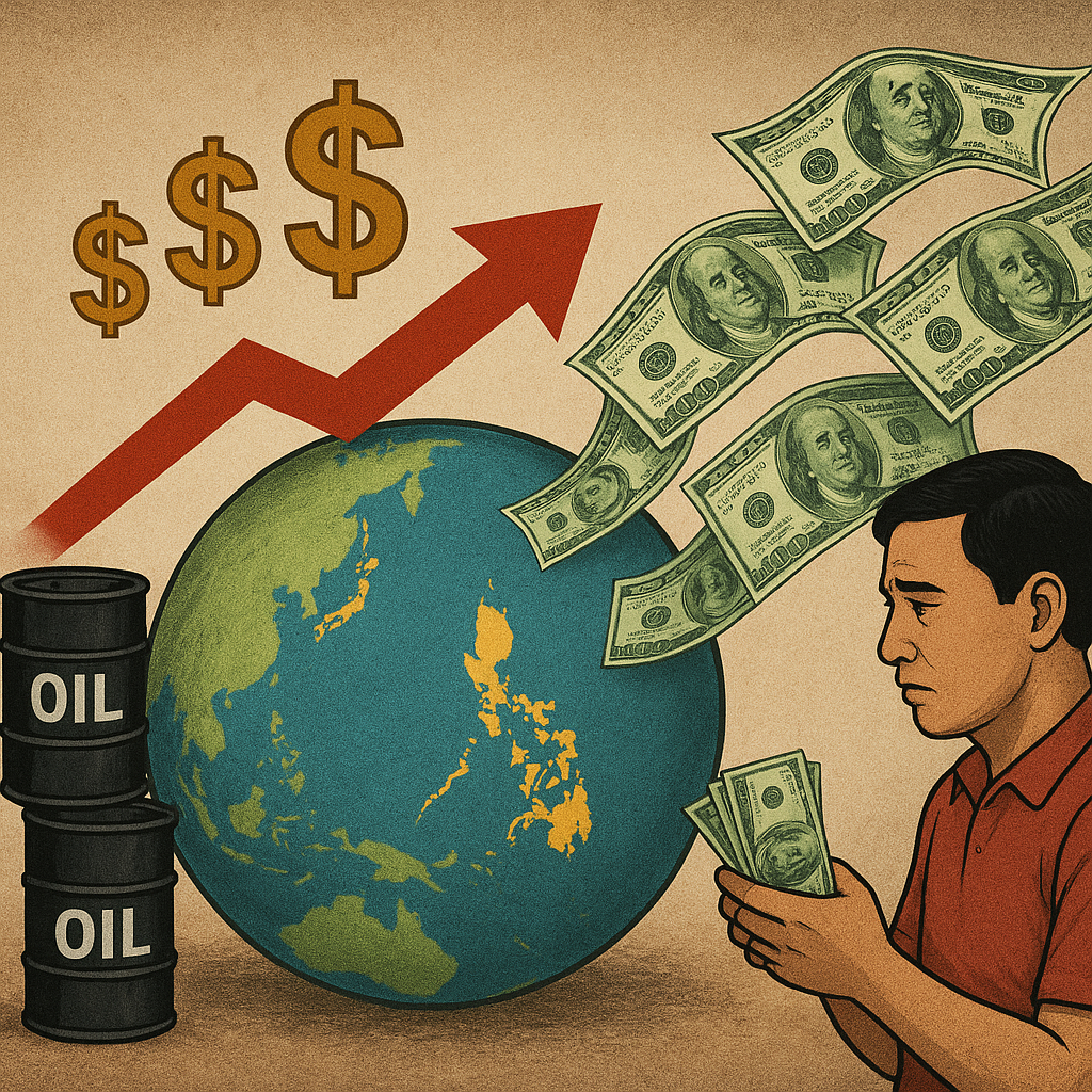 The Philippine economy is under pressure due to surging oil costs and potential threats to remittance inflows, according to official commentary.