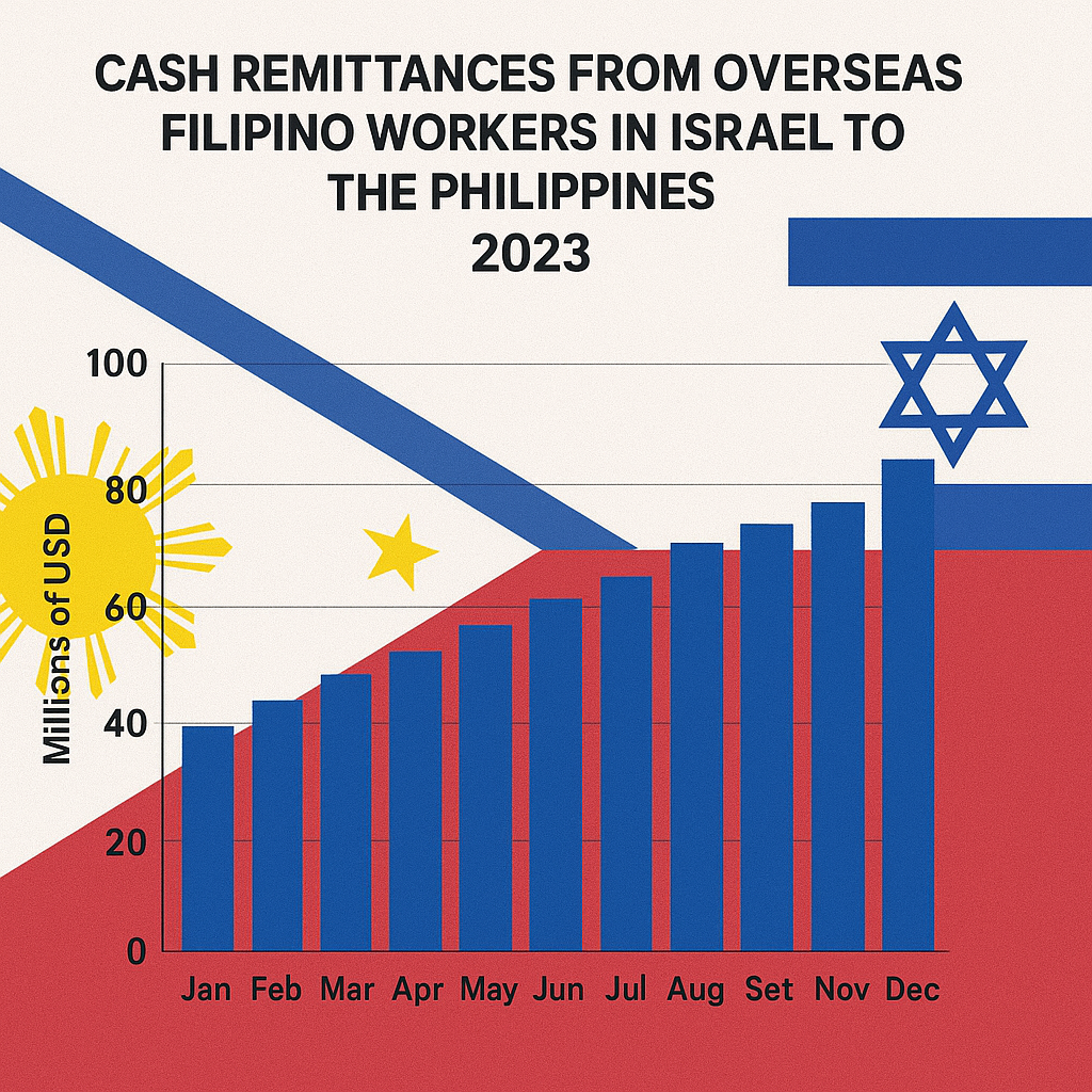 An overview of cash remittances sent by Filipino overseas workers based in Israel during 2023, highlighting the financial contributions to the Philippines economy.